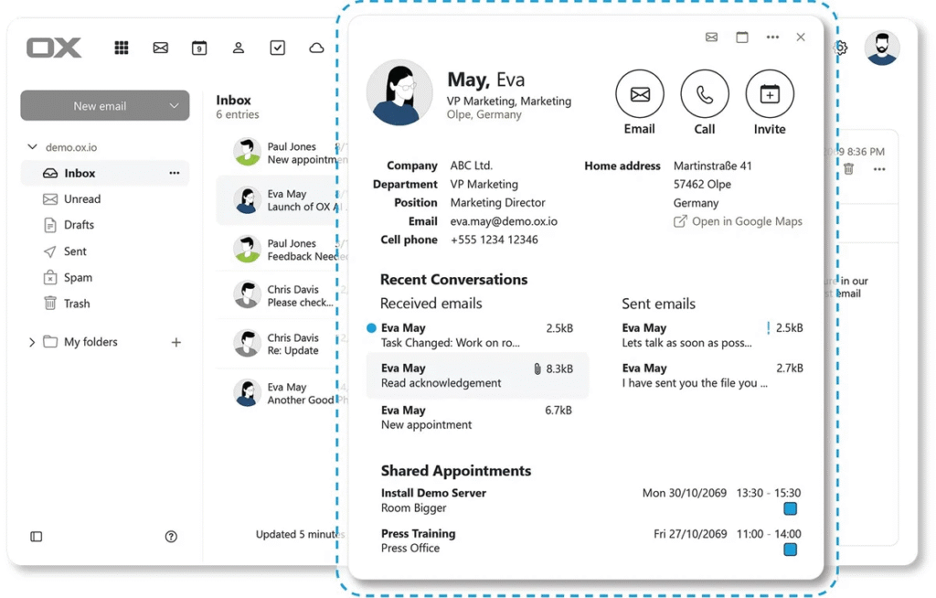 OX App Suite is a powerful email, communication and collaboration solution that gives you secure, reliable and professional email, calendaring, contacts and